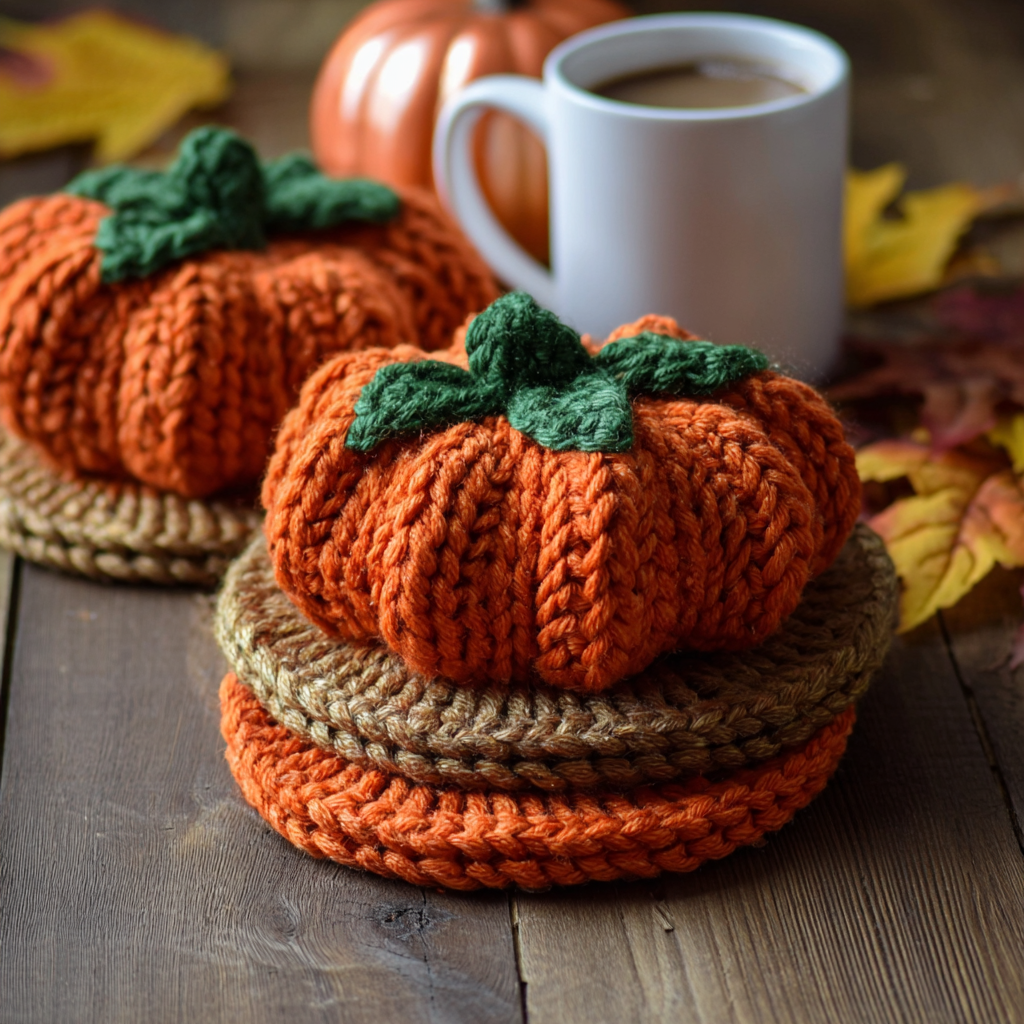 Chunky Pumpkin Coasters Free Crochet Pattern ๐งถ๐